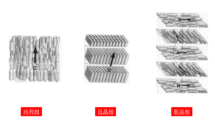 Pour que les cristaux liquides possèdent une valeur d’application pratique, leurs molécules doivent former un arrangement ordonné au niveau microscopique, connu sous le nom de « structure de phase ». Celles-ci sont principalement classées en trois types : la phase smectique hautement ordonnée, la phase nématique où les axes moléculaires longs sont alignés mais les positions sont désordonnées (la plus couramment utilisée dans la technologie d'affichage actuelle) et la phase cholestérique disposée en spirale.