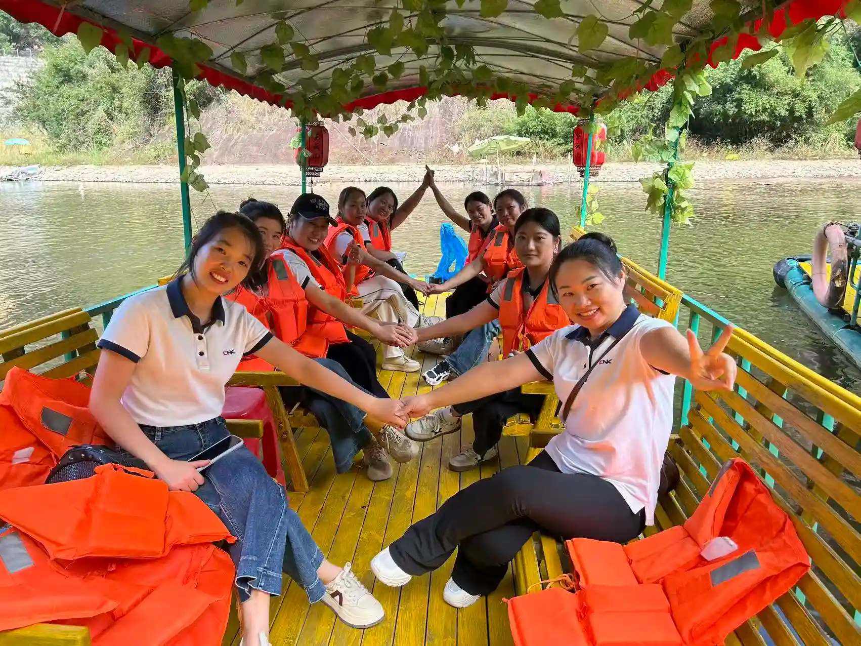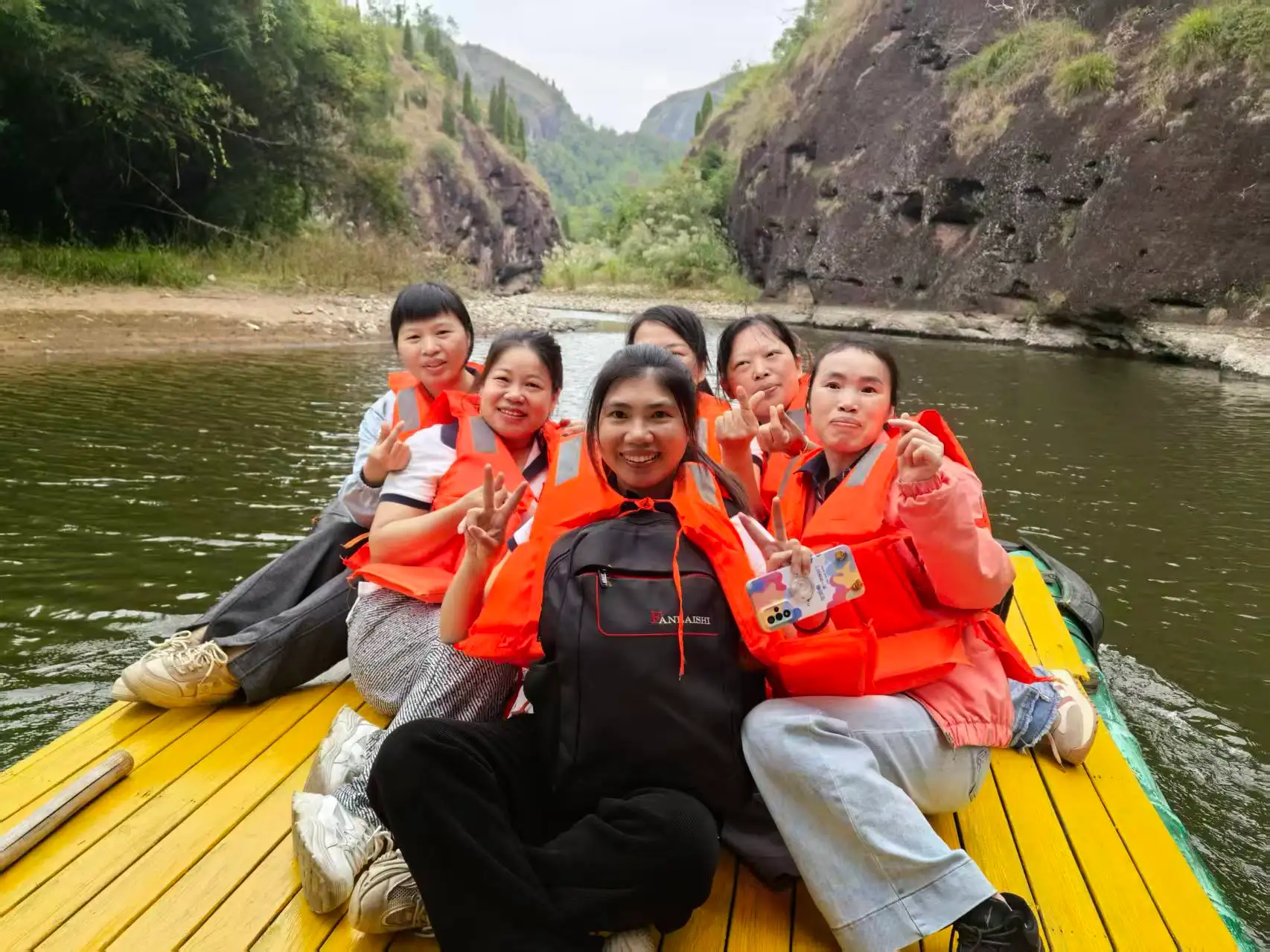 L’horaire de l’après-midi était plus tranquille. Toute l'équipe est montée à bord de radeaux de bambou pour une croisière panoramique à travers dix kilomètres de paysages époustouflants. Glissant entre les montagnes Danxia et les eaux émeraude, ils ont admiré le paysage pittoresque où « les montagnes vertes se dressent comme des sourcils sombres et les eaux claires coulent comme de la soie ». Le long du parcours fluvial de 3,2 kilomètres, tout le monde s'est détendu, s'immergeant dans la tranquillité et la beauté de la nature.